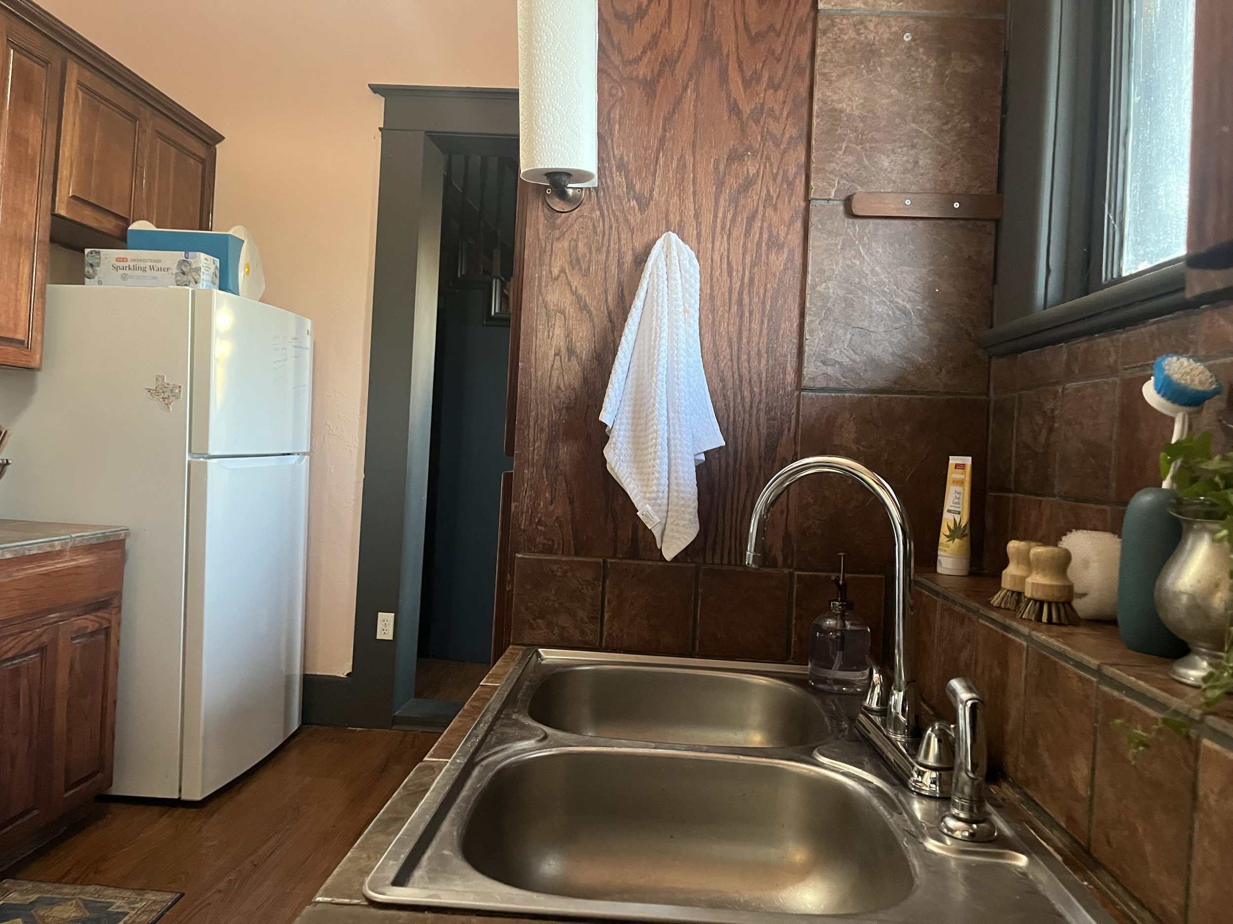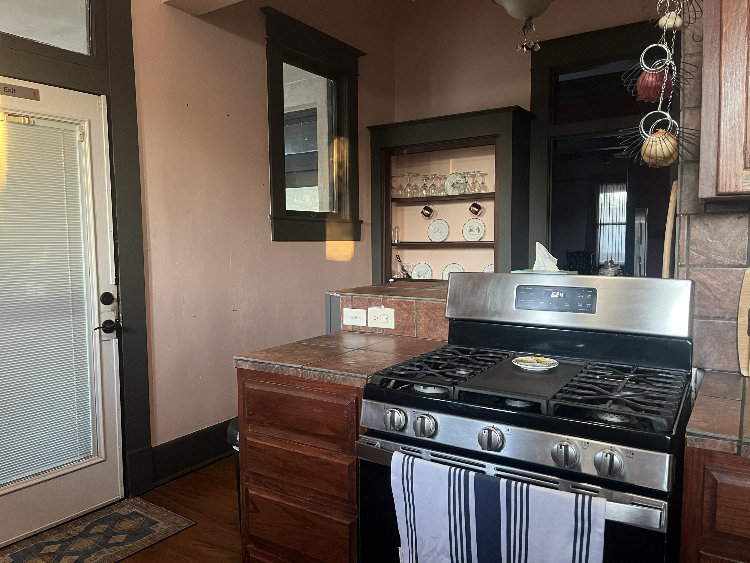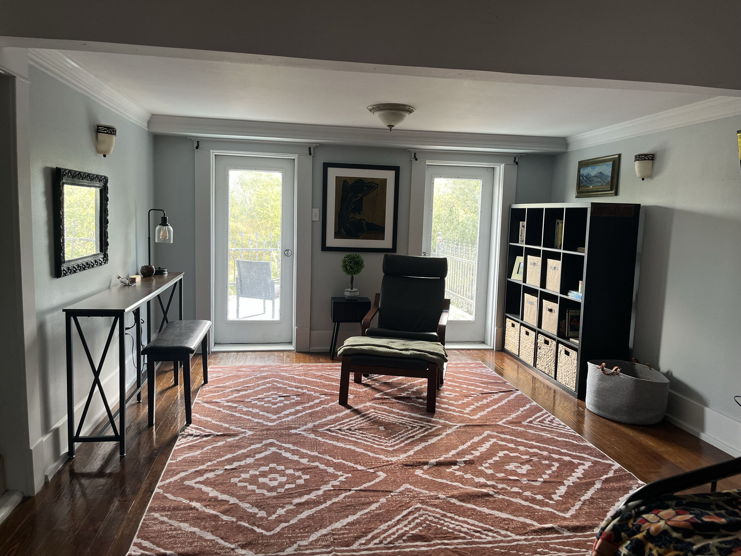 The Baumgartner Room, named after German artist Fritz Baumgartner, whose hand-signed and numbered mid-century pieces anchor the room in deep, contemplative calm. This north-facing suite was intentionally designed as a cozy retreat with no exterior windows, offering a serene and private atmosphere ideal for rest or focus. The room features a full-size bed with a new mattress and bedding, a smart TV, and a private en-suite bathroom with a large shower. Guests also enjoy access to the upstairs coffee bar and western-facing patio…the perfect spot to unwind and watch the sunset. Access to a shared kitchen, laundry, wrap-around porch, and yard completes this bright and inspiring retreat. $800 mo / $250 deposit – water/trash/electric/gas/wifi included.